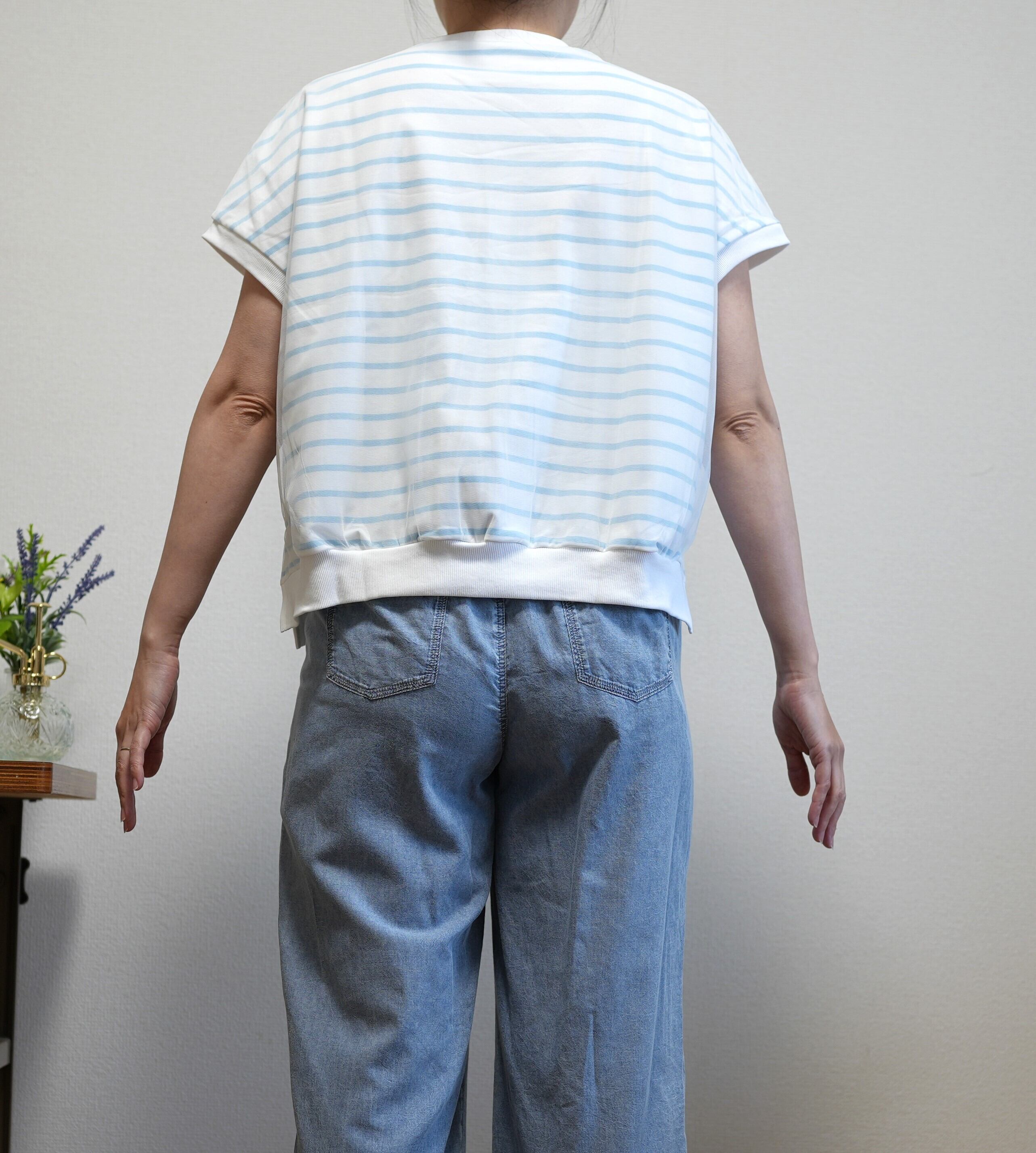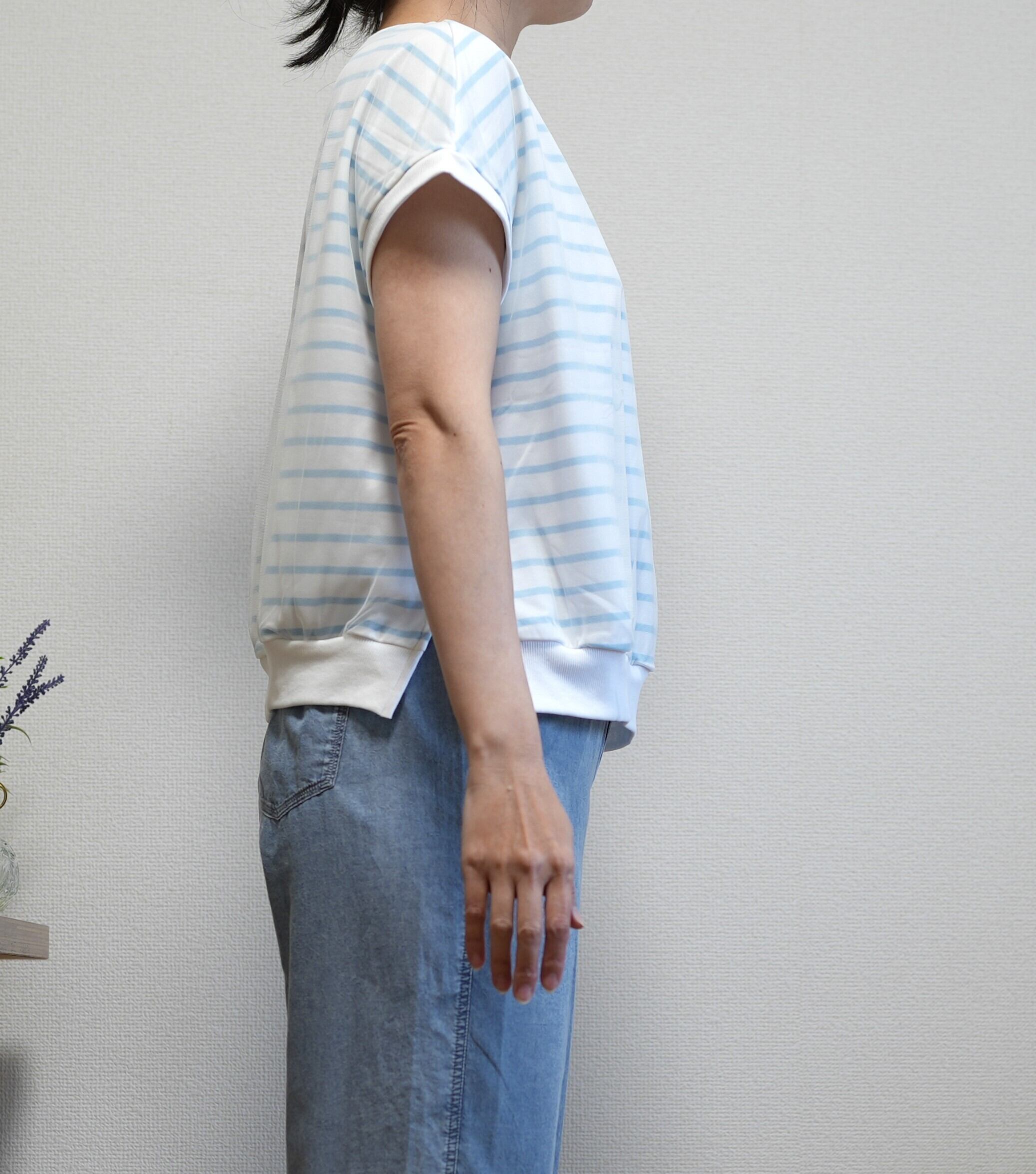 カジュアルな見た目ですが、繊細なネットが重ね合わせてあるため、やわらかなできれい目な印象もあり、きれい目なカジュアルスタイリングをお楽しみいただけます